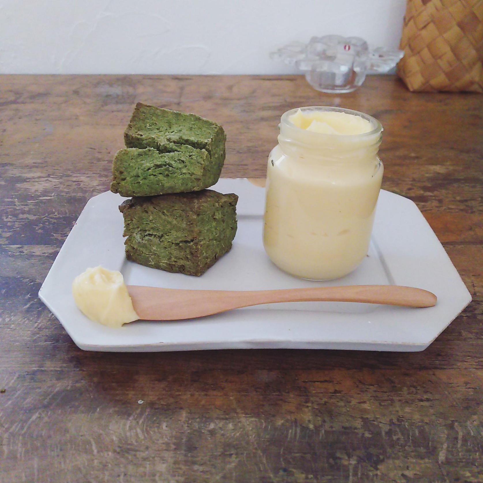 先日は、国産のレモンがあるうちに!とレモンカードを作ったので、それに合わせて抹茶のスコーンを作りました。